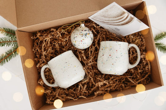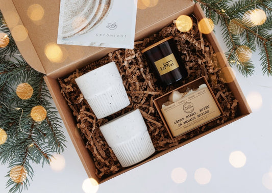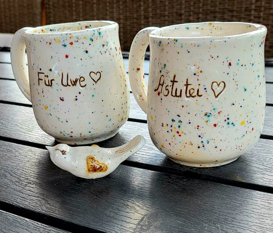 Rankų darbo puodelių ir žaisliuko rinkinys „Konfeti“